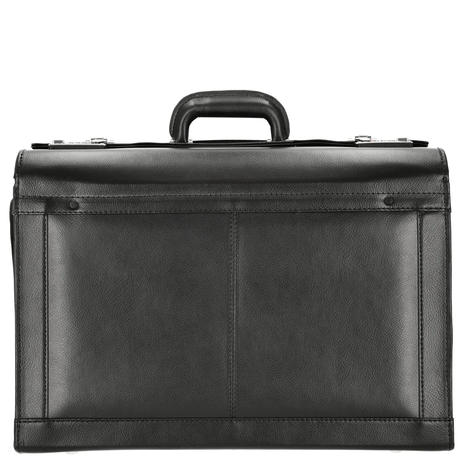 - Innen: Gepolstertes Laptopfach, Reißverschlussetui sowie drei Schreibgeräteschlaufen im Deckel, Hängeregistervorrichtung
