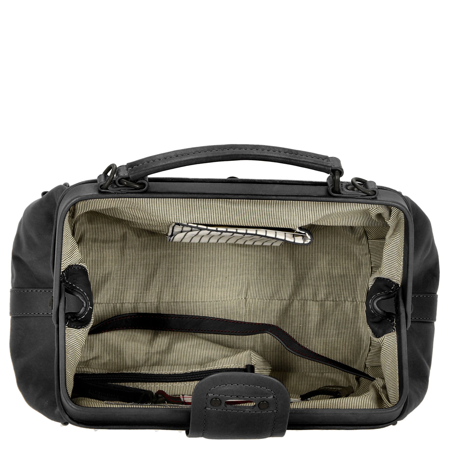 - Hauptfach mit Lederlasche und Drehschloss