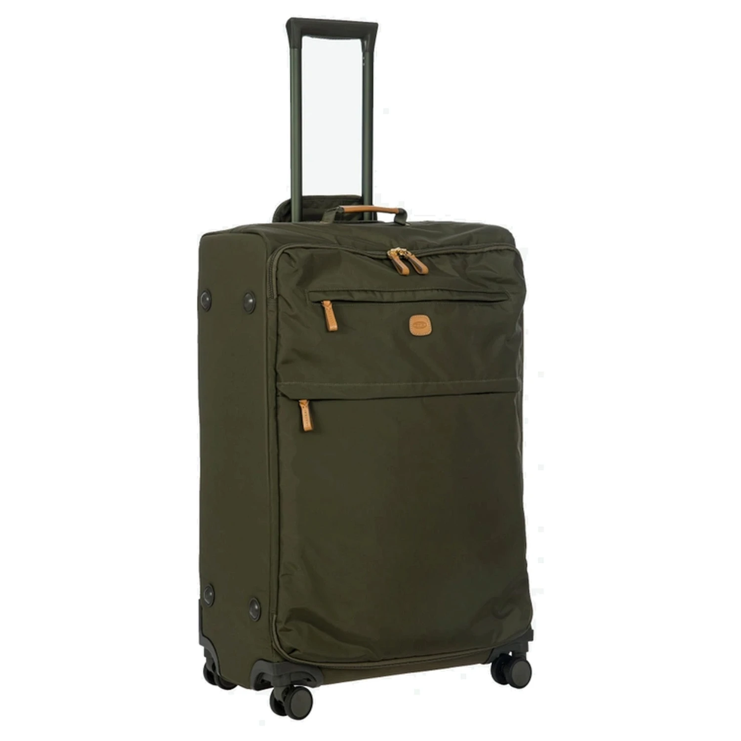 Der große Trolley der Kollektion X-Travel besteht aus satiniertem Nylon mit Details aus Leder.