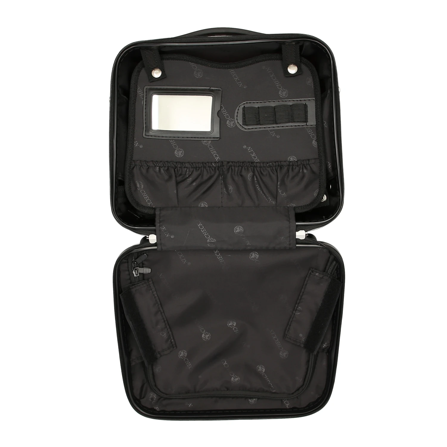- Hauptfach mit flexibler Trennwand inkl. Spiegel