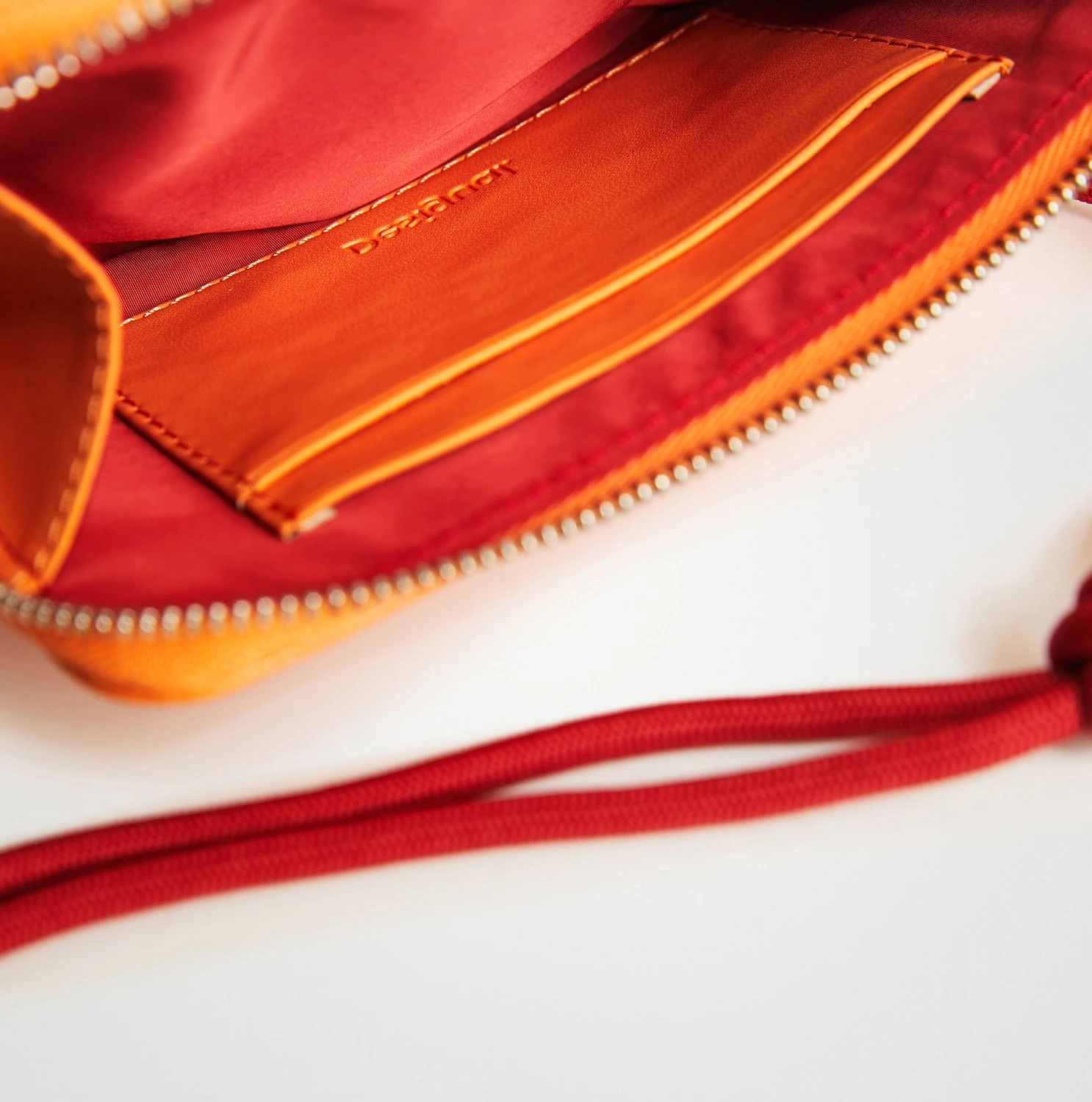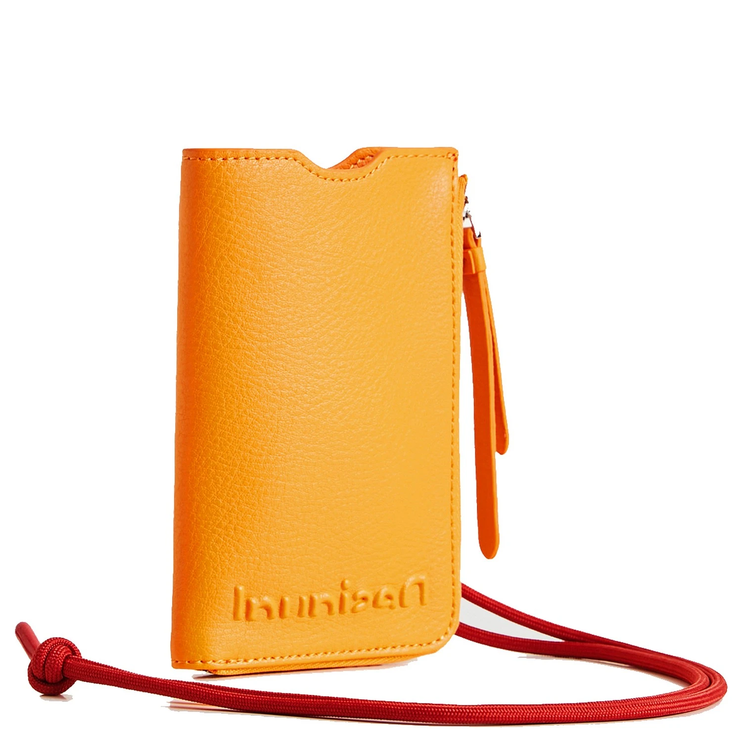 Die praktische Handytasche von Desigual ist mit 2 Fächern und Platz für Karten ausgestattet. Sie lässt sich am Band umhängen.