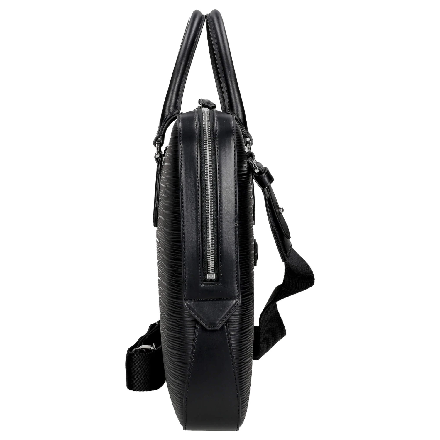 Die dünne Aktentasche aus der Meisterstück-Kollektion von Montblanc ist sowohl elegant als auch geräumig und kommt mit geprägtem Baumrindenmotiv.