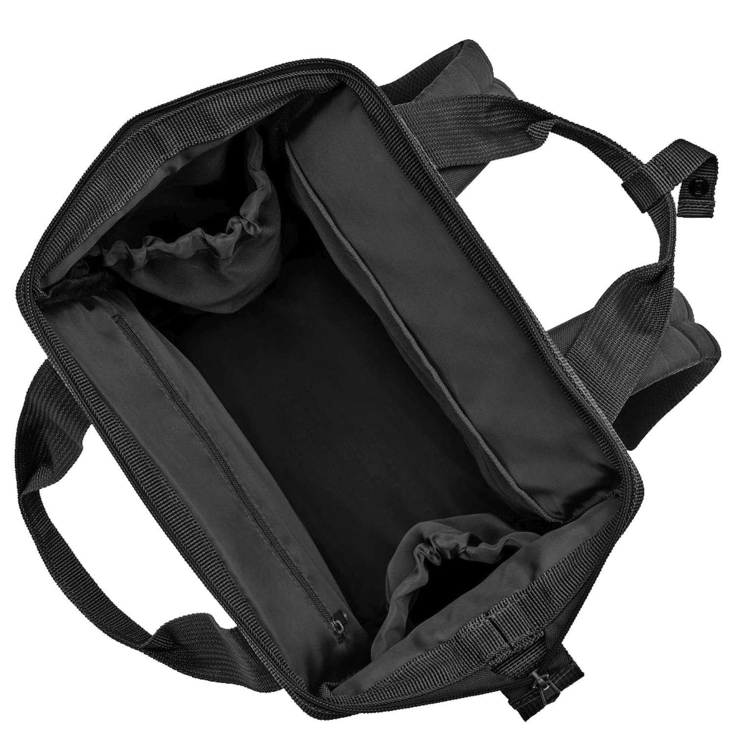 - große Öffnung mit Reißverschluss und eingearbeitetem Metallbügel