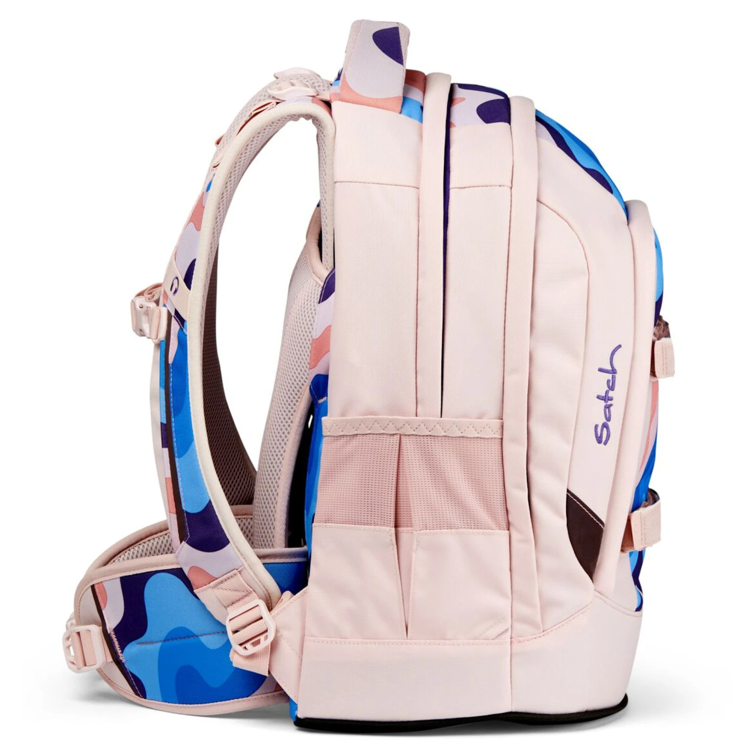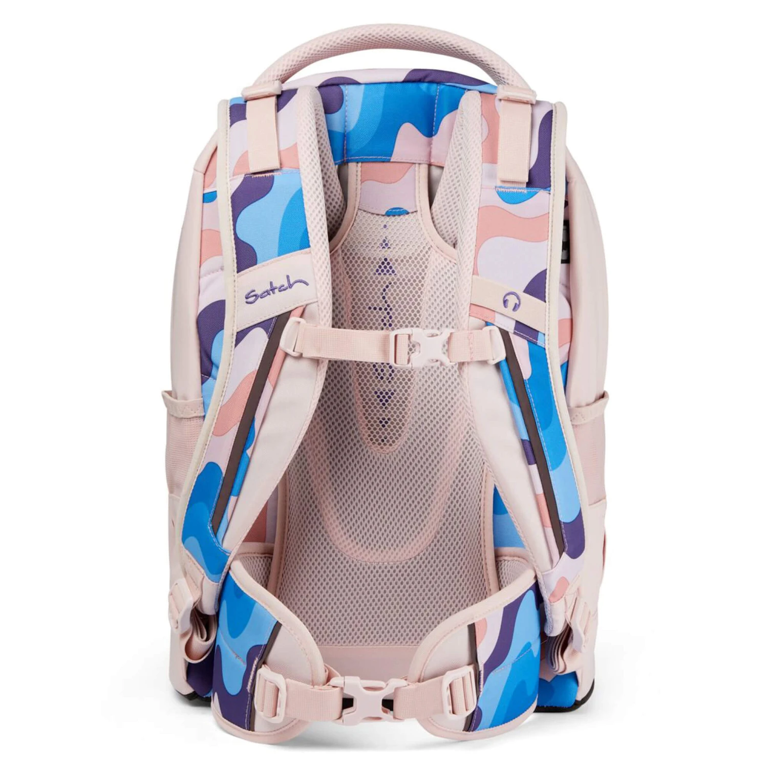 satch entlastet und wächst mit: Aus dem Bergsport auf den Schülerrücken: Das satch Tragesystem garantiert die Verlagerung des Gewichts von den Schultern auf den stabilen Beckenbereich. Passgenaue Einstellung von 1,40 m – 1,80 m.