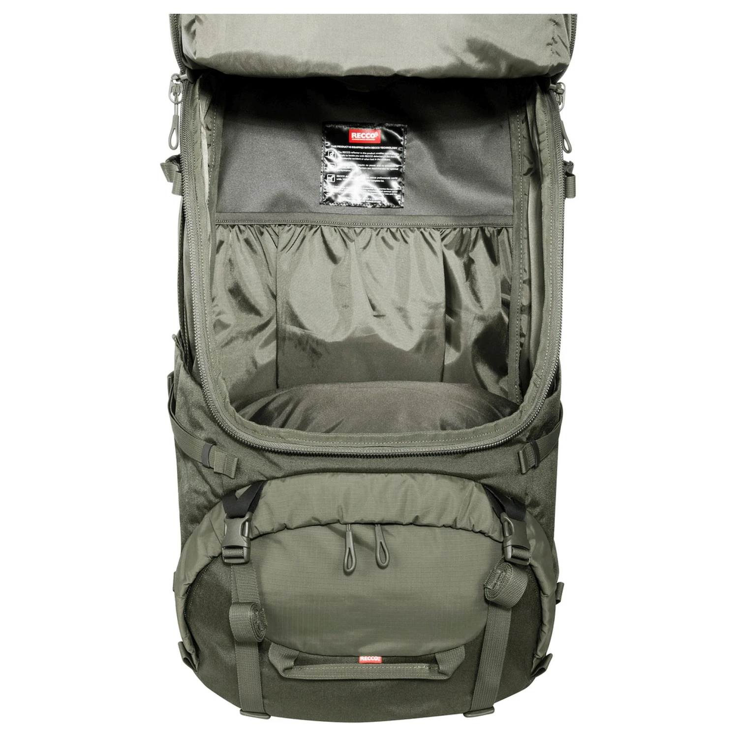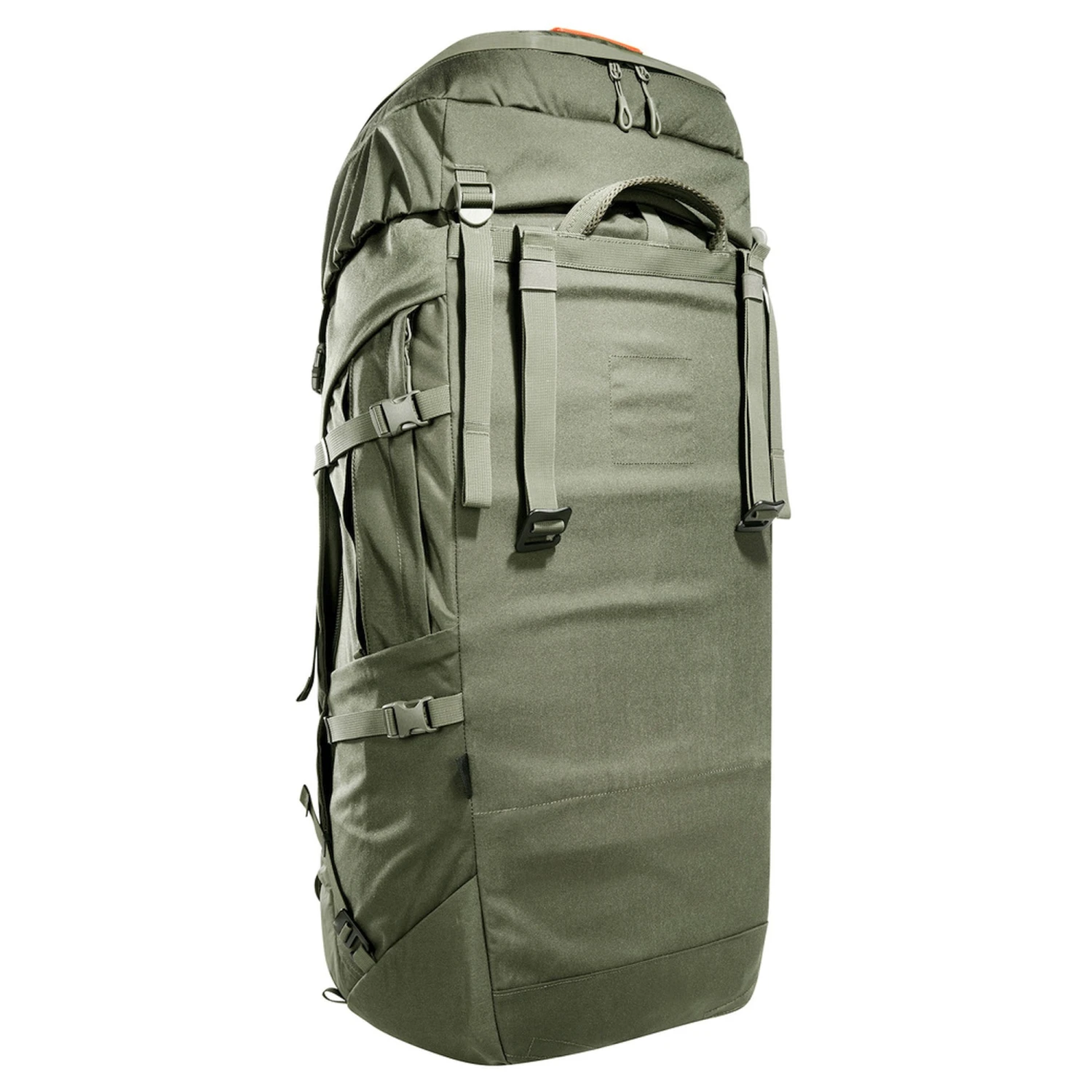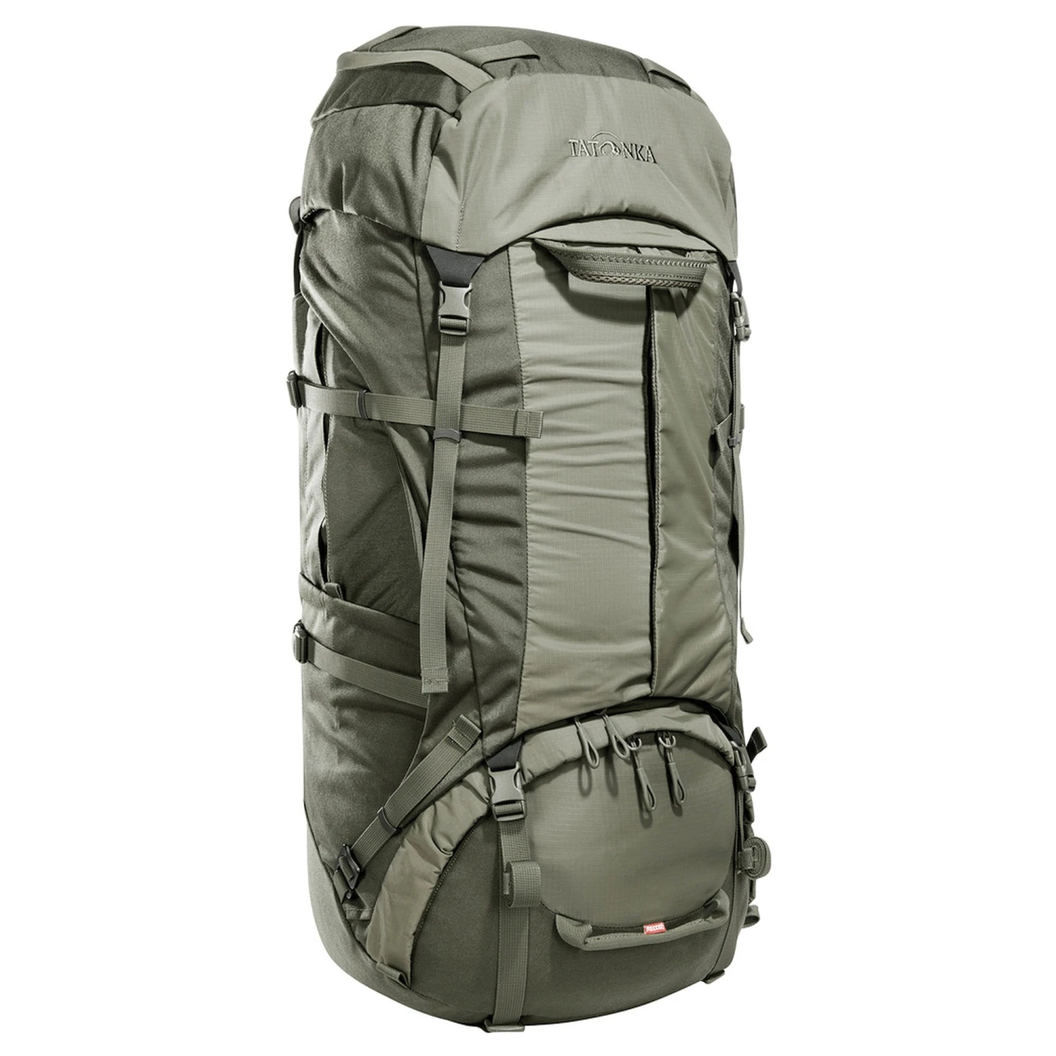 Um den Yukon Carrier X1 als einen Trekkingrucksack nutzen zu können, hat Tatonka den Yukon Carrier Pack 55+10 Packsack entworfen. Der Packsack wird an mehreren Punkten an das Tragesystem angeklickt.