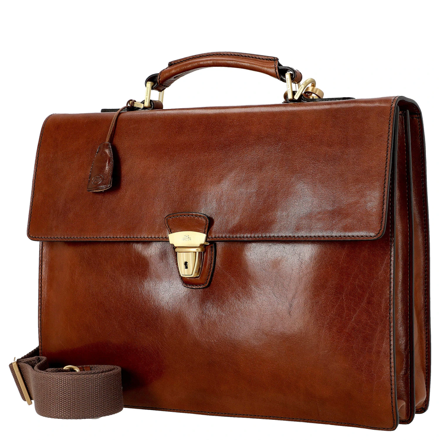 dürfen. Das Leder der Aktentasche ist glatt und glänzend. Sie wird