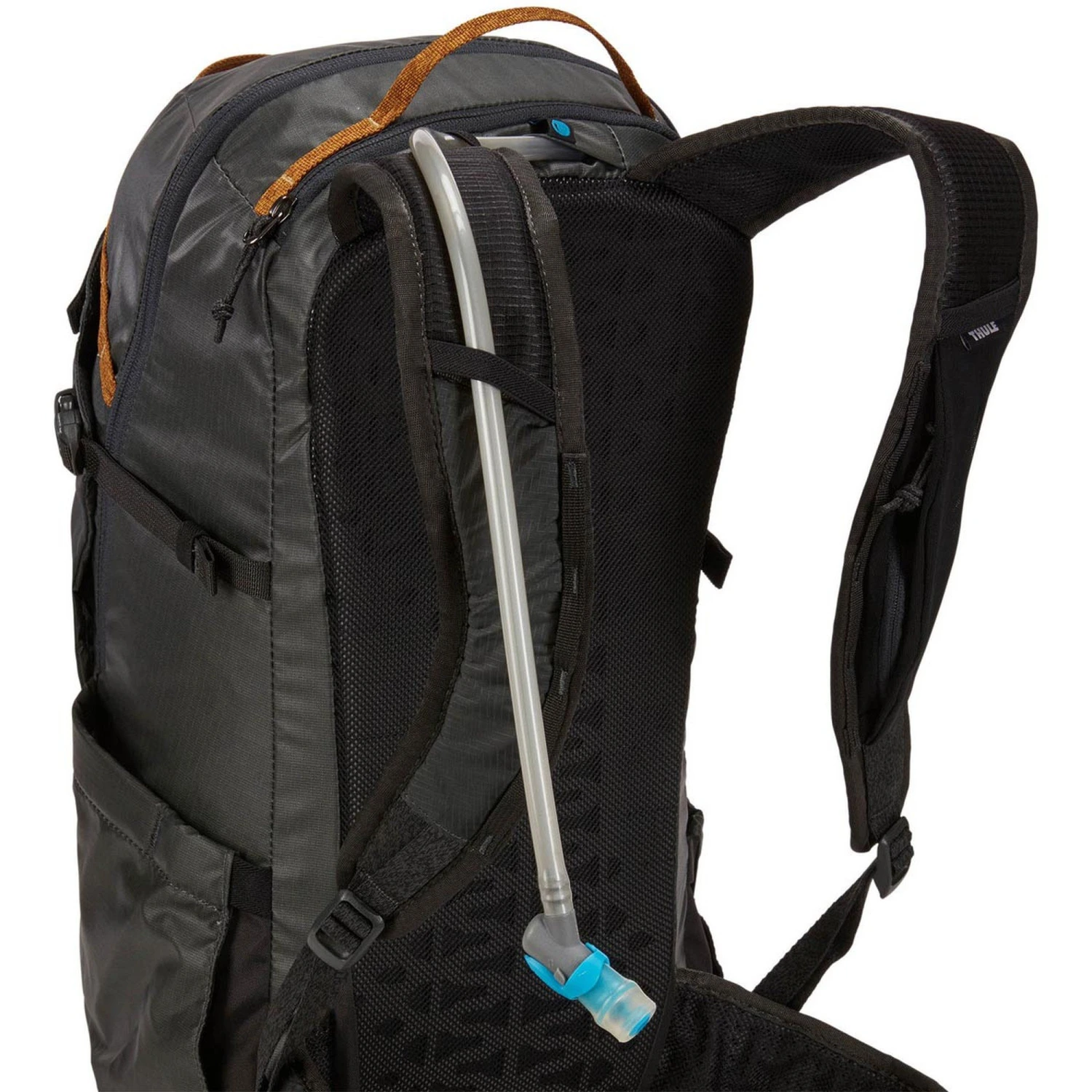 - Der Rucksack verfügt über ein Trinkblasenfach mit Trinkschlauchausgang (Trinkblase separat erhältlich)